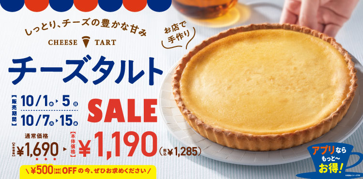 10月1日(水)~5日(日)と、10月7日(火)~15日(水)の期間中、「チーズタルト」が
