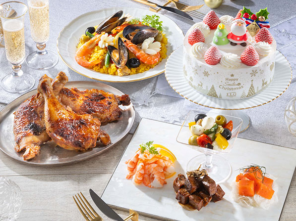 オードブル、パエリア、チキンに、4種の選べるケーキを合わせたお得なセット。