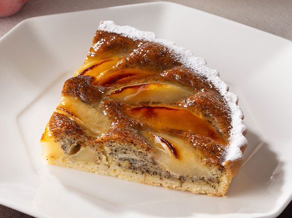 アールグレイ香るダマンド生地に白桃シロップ漬けと黄桃のシロップ漬けを並べて焼き上げました。