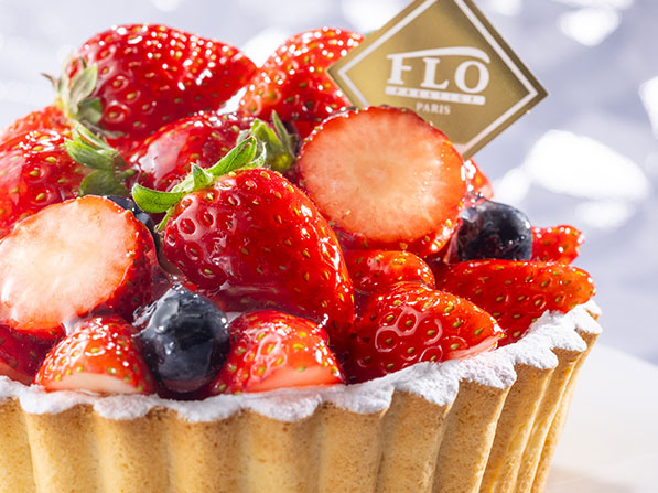 チーズ入りプリンタルト台に旬の苺をふんだんにトッピングしました。